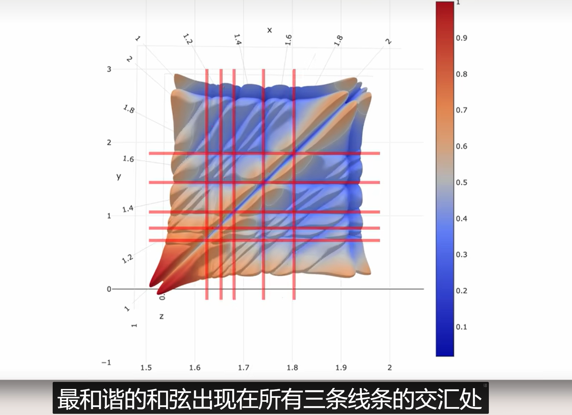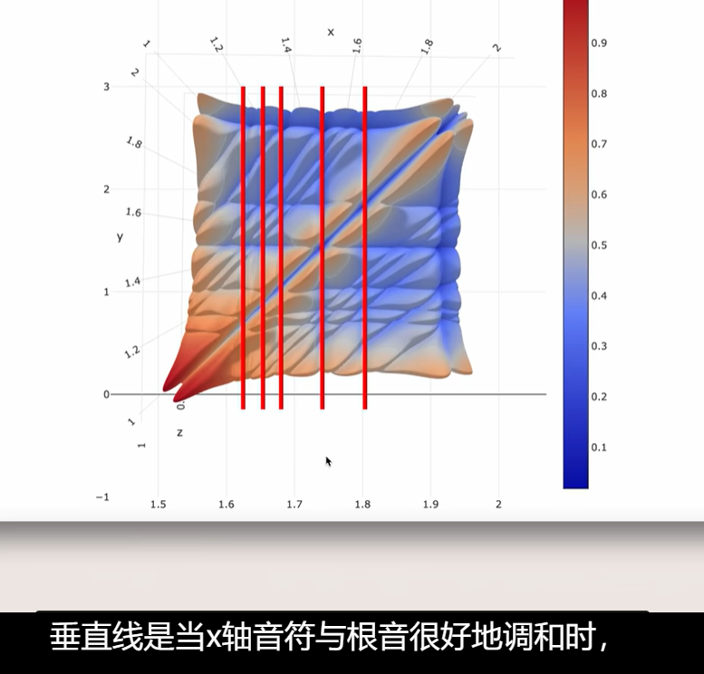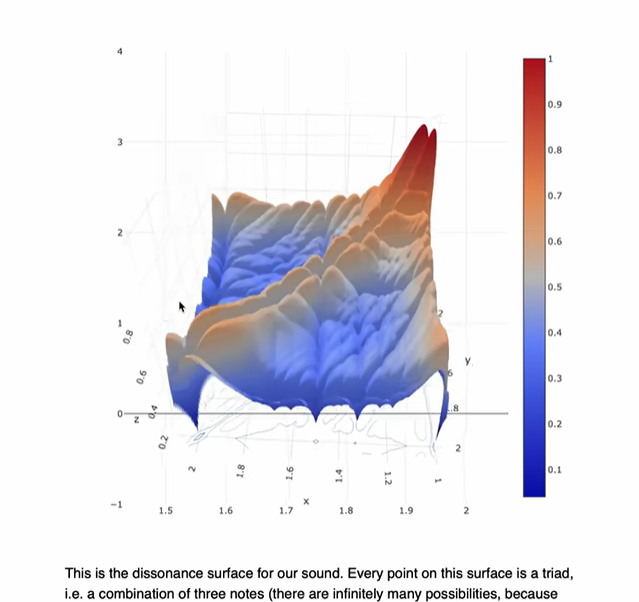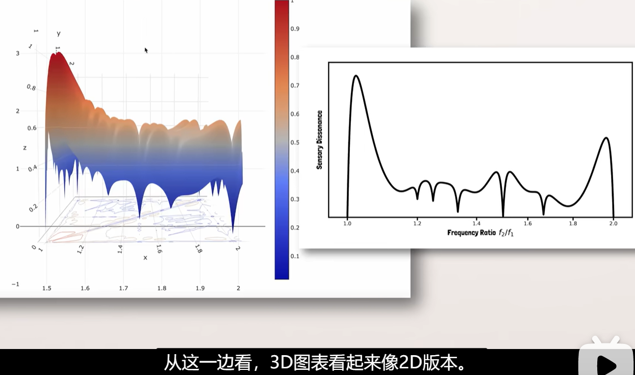- YouTube【分钟物理】和弦背后物理学 视频作者的网址 https://aatishb.com/dissonance/ 这个网址有下文三个音和弦不和谐程度图的3D建模。