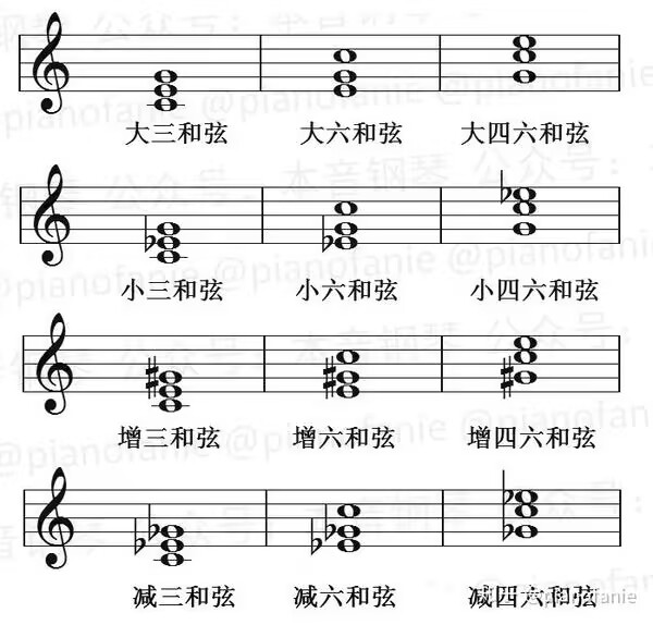 - 与和弦的关系:三和弦由 根—三、根—五 决定性质(大三+纯五=大三和弦;小三+纯五=小三和弦);七和弦还要看 根—七 是大七、小七还是减七。读谱与和声分析 时,先在脑中拆成 纵向音程,再叠成和弦类型。