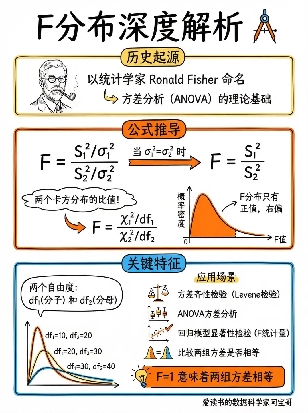 $$方差比的 F 分布:
