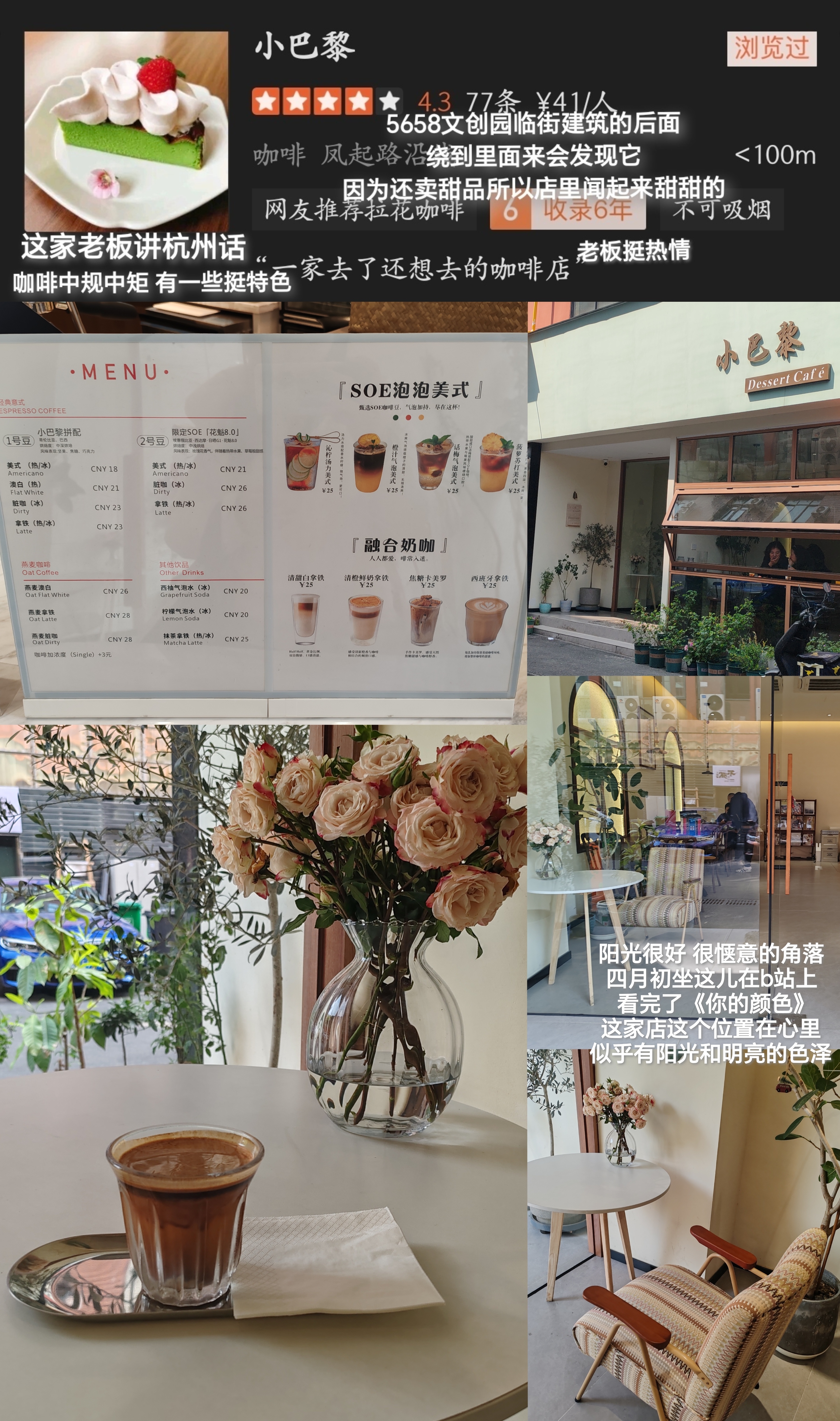 在5658文创园里面,比较隐蔽。老板会说杭州话,卖咖啡和甜品,环境味道都还行。