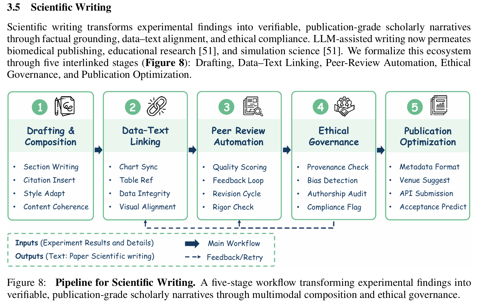 Ethical Governance Frameworks:解决 AI 生成科学的社会影响,提出作者管理、信用归属和责任维护的框架。