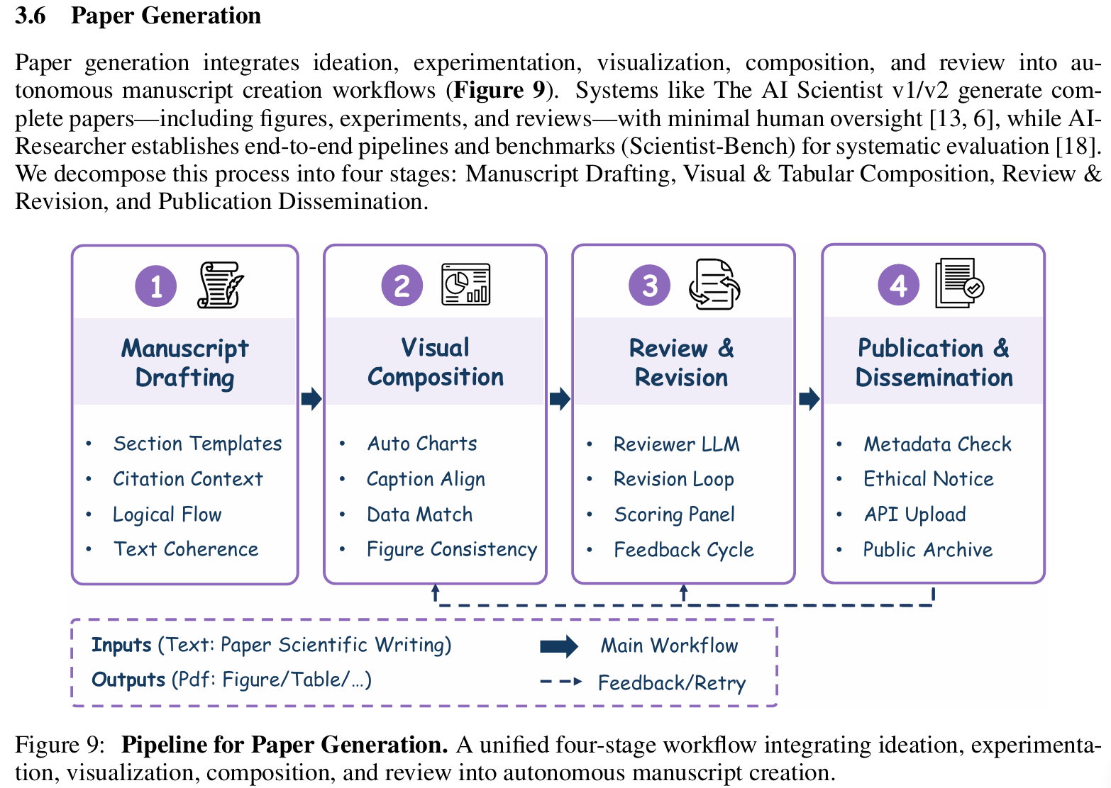 - The AI Scientist v1/v2:完全自主系统,可生成完整 publication-ready 手稿