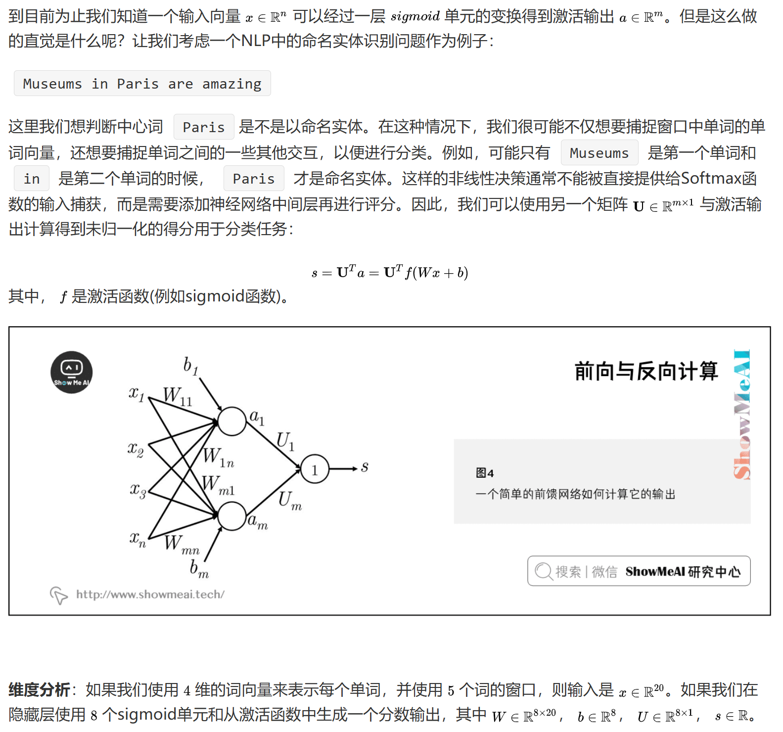 - 维度分析:如果使用d维词向量,窗口大小为n,则输入维度为$n \times d$